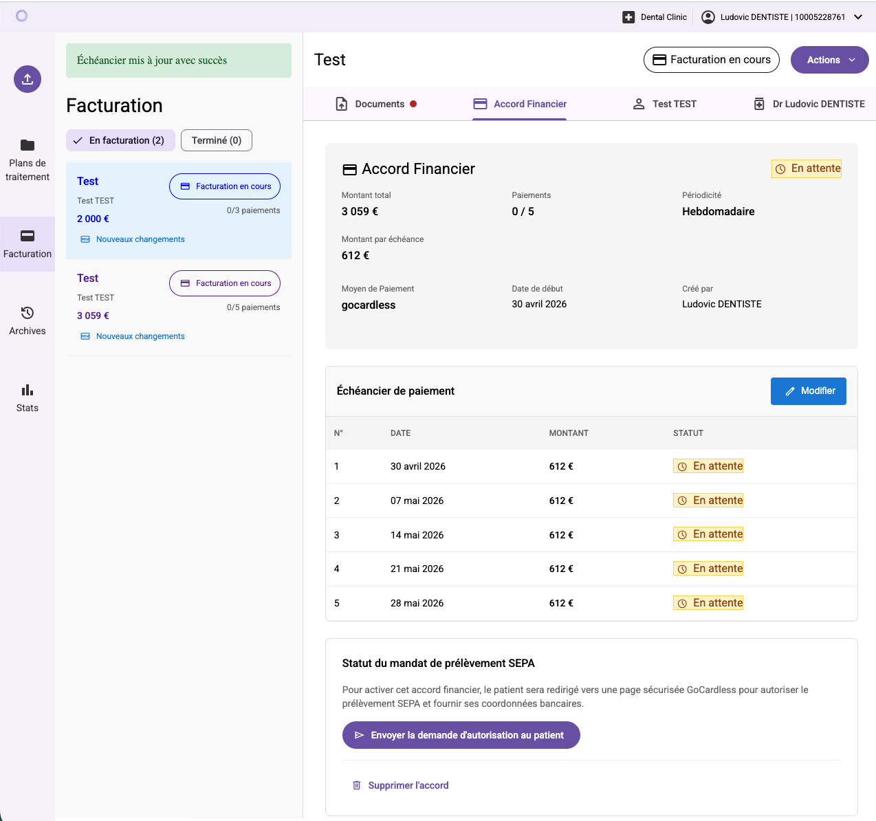 Le prélèvement SEPA permet de mettre en place un échéancier de paiement directement entre votre cabinet et le patient, via une solution comme GoCardless.